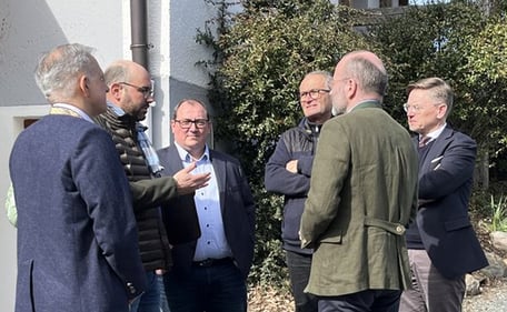Auf diesen Mangel u. a. verwiesen WECK-HOLZ-Geschäftsführer Johannes Kirchner und HPE-Geschäftsführer Marcus Kirschner im Gespräch mit dem Vorsitzenden der EVP im Europaparlament Manfred Weber, dem Europaabgeordneten Christian Doleschal, dem Vizepräsidenten des Bayerischen Landtags Tobias Reiß und Landrat Roland Grillmeier. Johannes Kirchner überreichte einen offenen Brief in dem er die Volksvertreter dazu einlud das Unternehmen zu besuchen, um sich über weitere besorgniserregende Veränderungen zu informieren, welche durch die EU-Verordnung für die Holzpackmittelbranche und deren Kunden im Raum stehen.